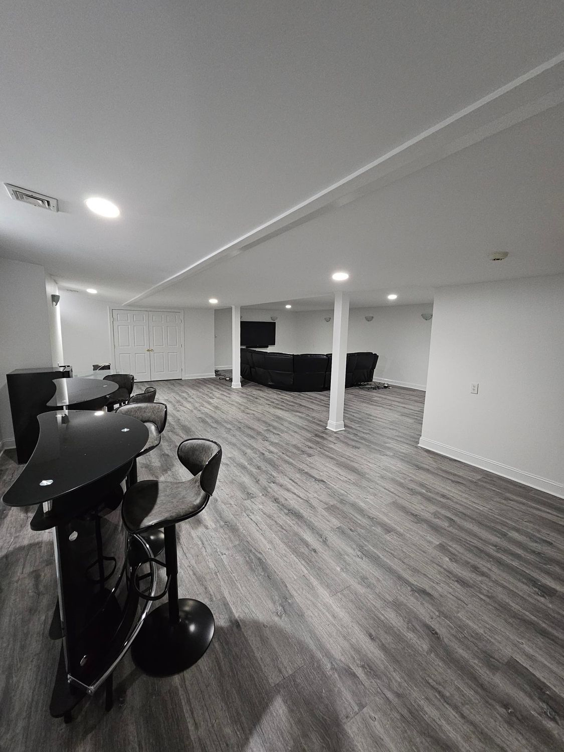 Open layouts rule in basements. Why chop up limited space with walls? We design around the stuff that can't move - support posts, ductwork, that sort of thing. Turn obstacles into features instead of hiding them.